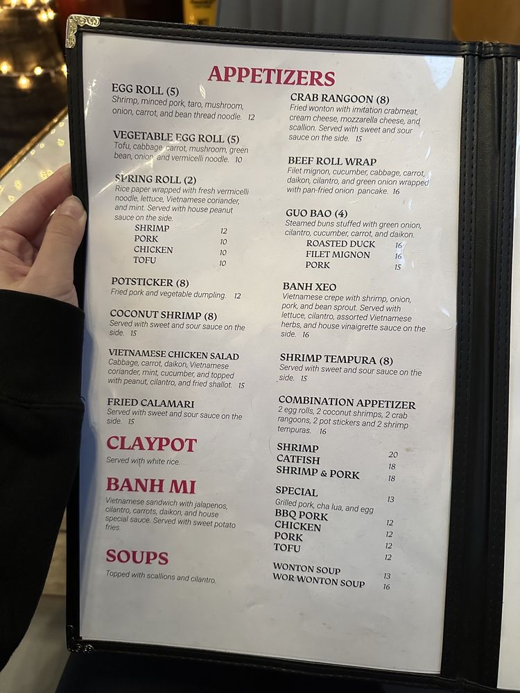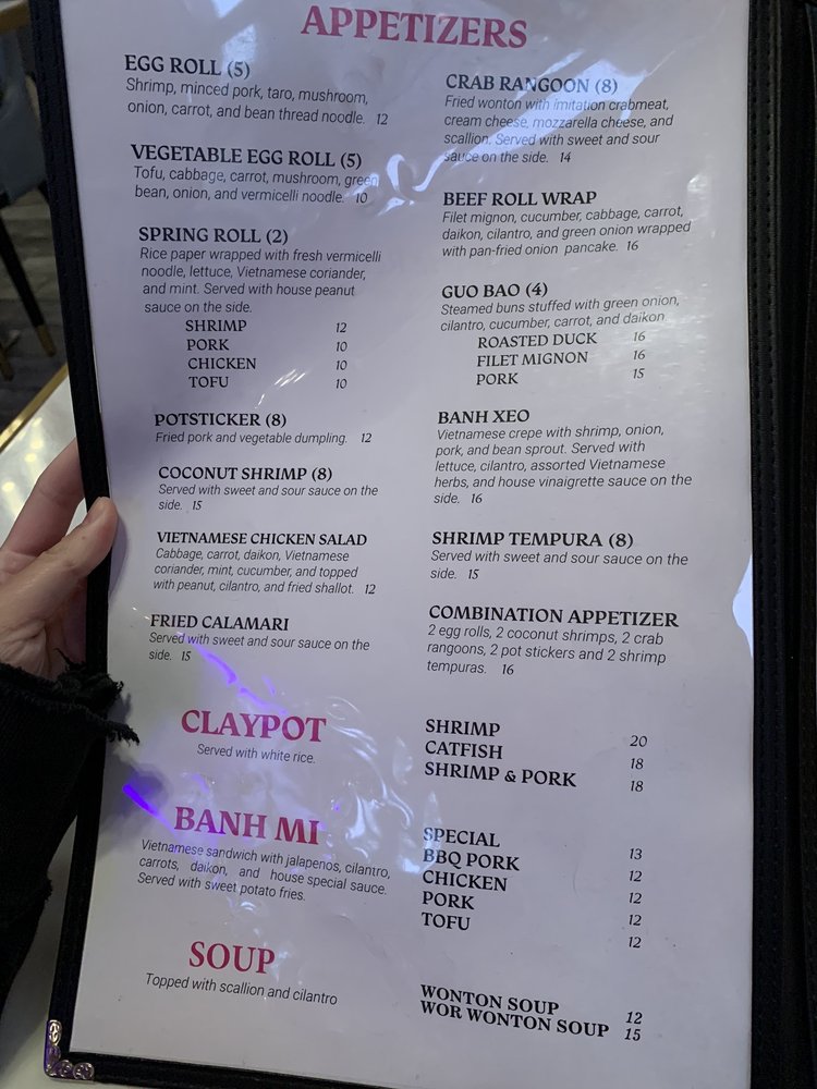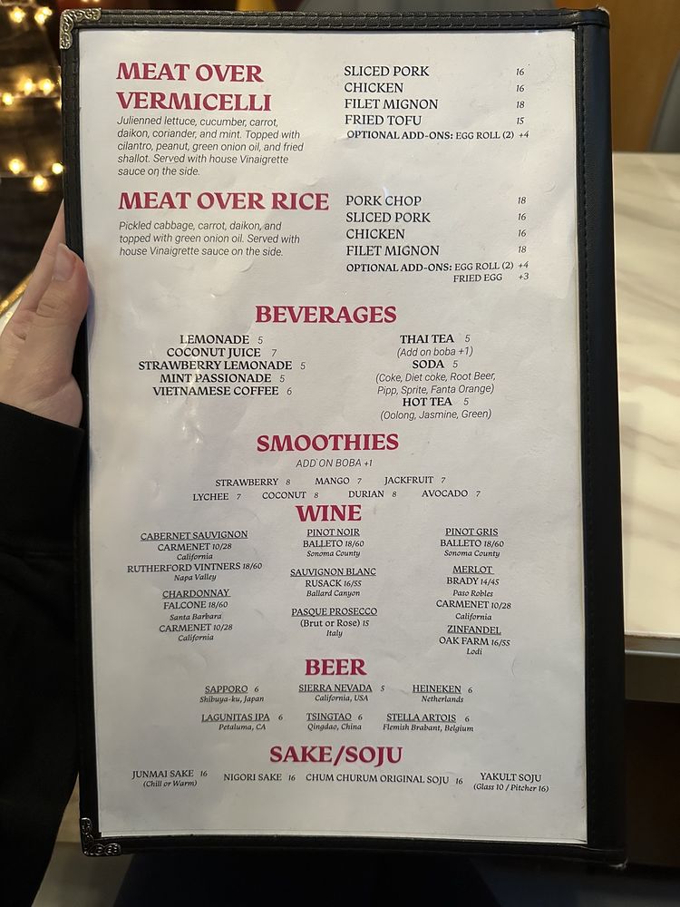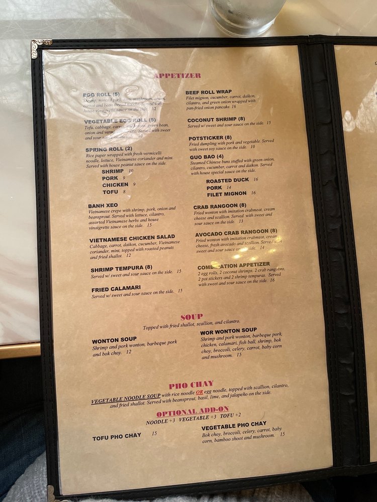 Introducing the menu at Pho Tasty in Davis, CA, where the ambiance is cozy and the food is top-notch. Start your meal with appetizers like Spring Rolls or the Appetizer Combo for a varied taste experience. Indulge in flavorful soups like Wonton or Wor Wonton Soup packed with fresh ingredients. The highlight of the menu is the Pho Bo selection, ranging from Filet Mignon to Vegetable Pho, catering to all preferences. Customers rave about the delicious seafood pho, praising the well-balanced broth and perfectly cooked noodles. The Bun Bo Hue is a must-try for those seeking a spicy kick. With a chill vibe, Pho Tasty offers a welcoming environment for all diners. Experience the culinary delights at Pho Tasty and savor the authentic flavors of Vietnamese cuisine.